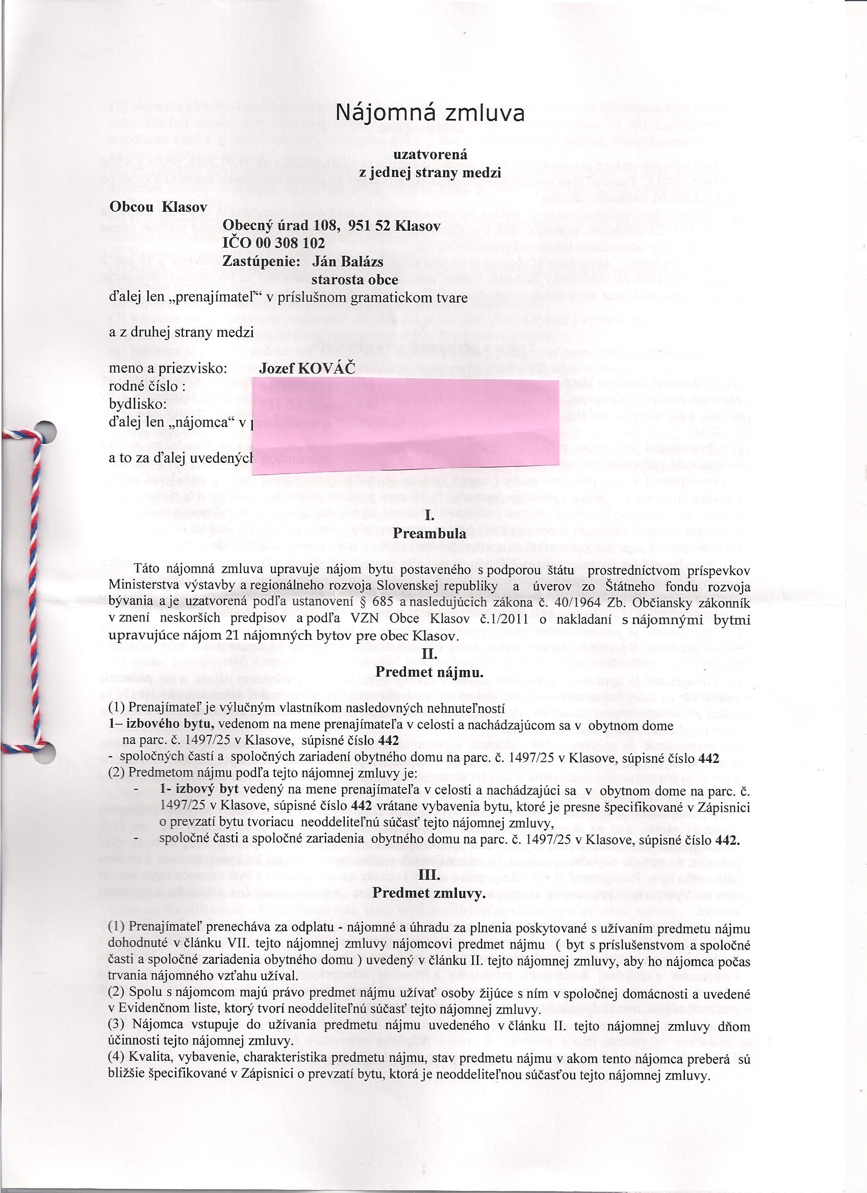 - 1. Zmluvná stranaObec Klasov