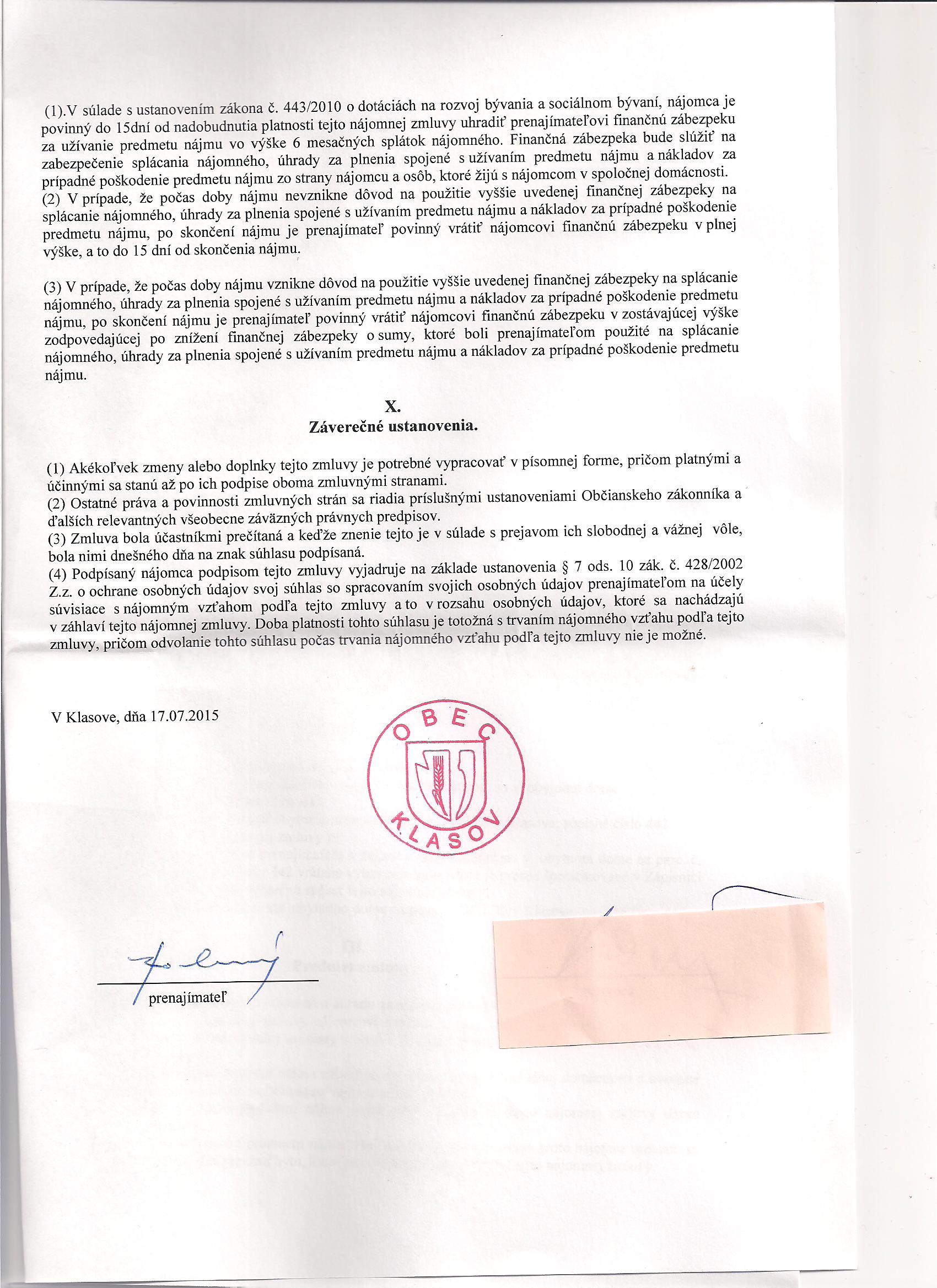 - 2. Zmluvná stranaObec Klasov